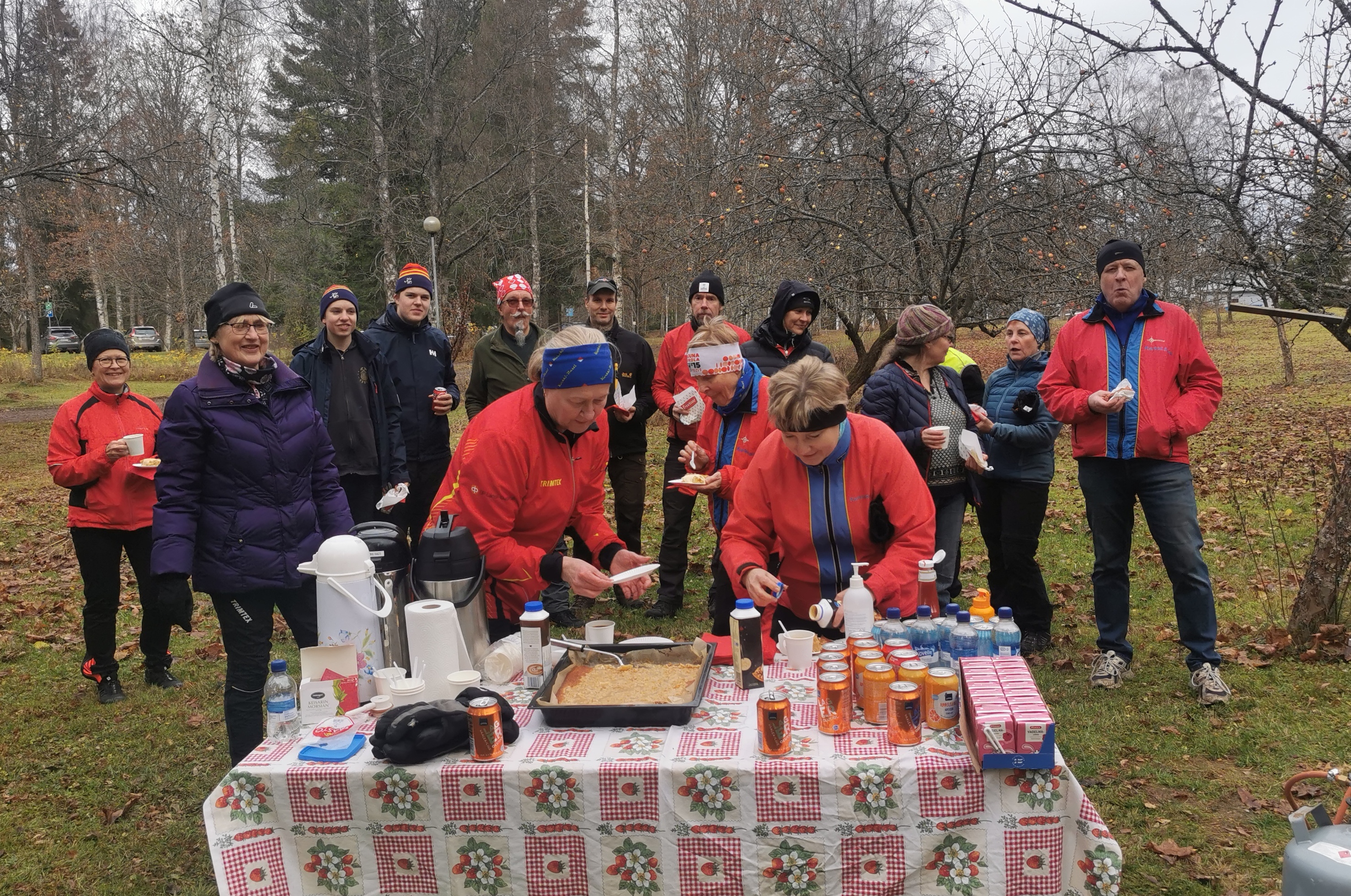 Taas lähti lehdet "Novalabin" pihalta, sää suosi ja mukana oli 16 raatajaa.Kuvassa joukkue erätauolla, jossa antimet olivat runsaat ja herkulliset. Suurkiitos mukanaolleille, :)